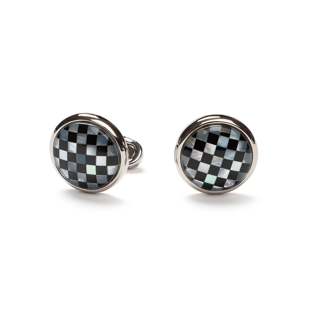 Spinki do Mankietów VAN THORN Szachownica – Masa Perłowa i Onyks